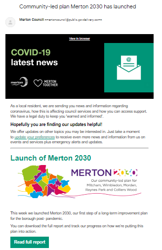 in the email titled “Community-led plan Merton 2030 has launched” on 11 Febraury 2021 from